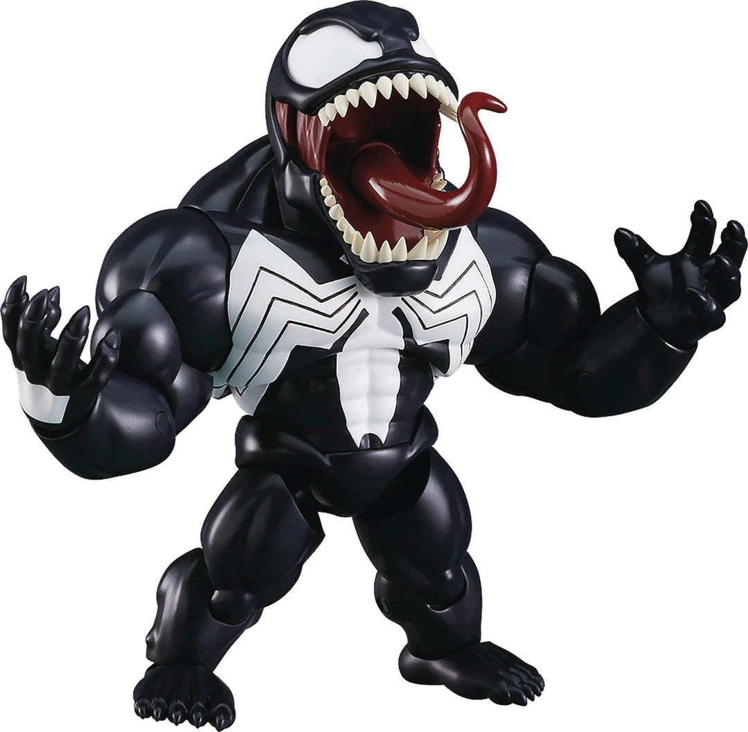 From Good Smile Company. Venom is joining the Nendoroid series! The Marvel Comics character Venom is now a Nendoroid! The Nendoroid features full articulation and two interchangeable face plates-a standard expression and a glaring expression. Optional parts include a web part, a symbiote part, head parts for use with his shoulders, the Necrosword, and a slimy tongue part, allowing you to create all kinds of scenes and situations in Nendoroid form.