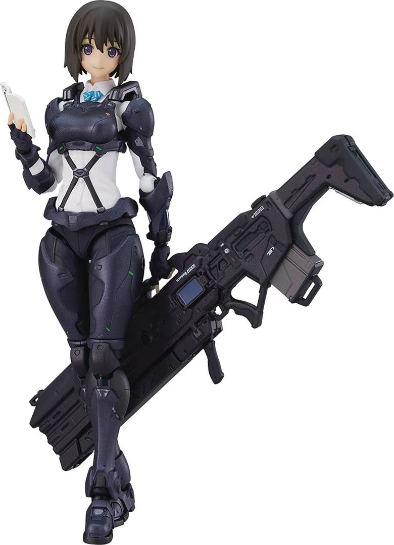 From MAX Factory. From Fukai Ryousuke’s doujinshi Arms Note comes a figma if the strongest high school girl armed with a power assist suit, ToshoIincho-san! She comes with three face plates including a smiling face, a face with closed eyes and a serious face, and optional parts include her railgun, Star Blazer, and two VALTS R224/S rifles, two electromagnetic tonfa-style batons and a book! The magazines of the railgun and short rifles can be removed and a monopod can be attached to the railgun. Mounts for holstering her short rifles and electromagnetic batons are included, along with an articulated figma stand.